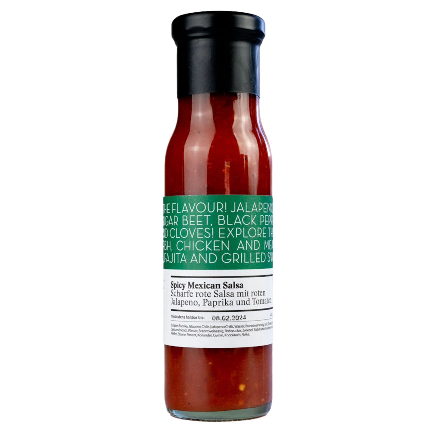 Viva la Salsa! Das säuerlich-würzige Aroma der Tomatillos, die typisch fruchtige Schärfe von grünen Jalapenos, die frische der Limette, sowie die Noten von Ingwer, Senf und Gurke verschmelzen in dieser Sauce zu einer sommerlich-mexikanischen Geschmacksexplosion.