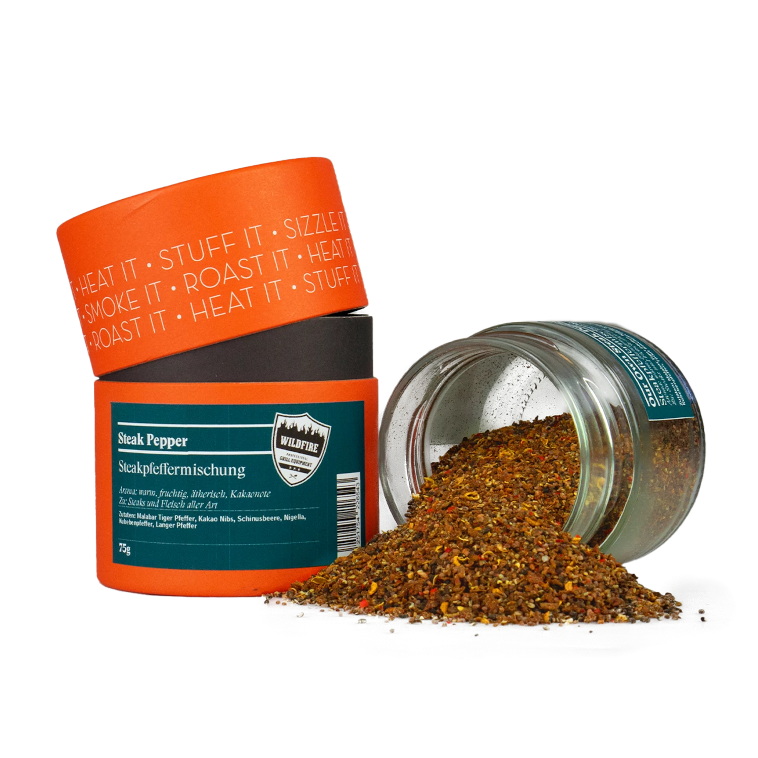 Mit diesem Big Green Egg Steak Set gelingen dir klassische Steaks im Handumdrehen und sehen noch dazu ausgezeichnet aus. Durch den mit enthaltenen Gussrost kannst du das Steak scharf anbraten oder mit dem Digital-Thermometer schön garen lassen. Natürlich darf das richtige Gewürz nicht fehlen. Die speziell für die Big Green Egg Deutschland GmbH entwickelte Gewürzkollektion ist ein Feuerwerk der tiefen, warmen Aromen!