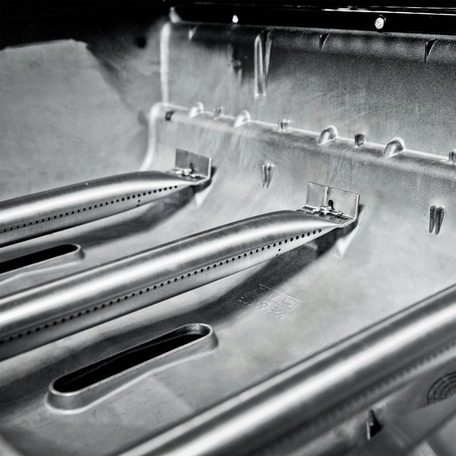 Der Baron S 490 IR verfügt über massive Gussroste, dem Flav-R-Wave Verdampfersystem, 4 Edelstahl Dual-Tube™ Brenner, sowie klappbare Edelstahl Seitenablagen und einen geschlossenen Unterwagen mit Edelstahltüren und einen doppelwandigen Edelstahldeckel.