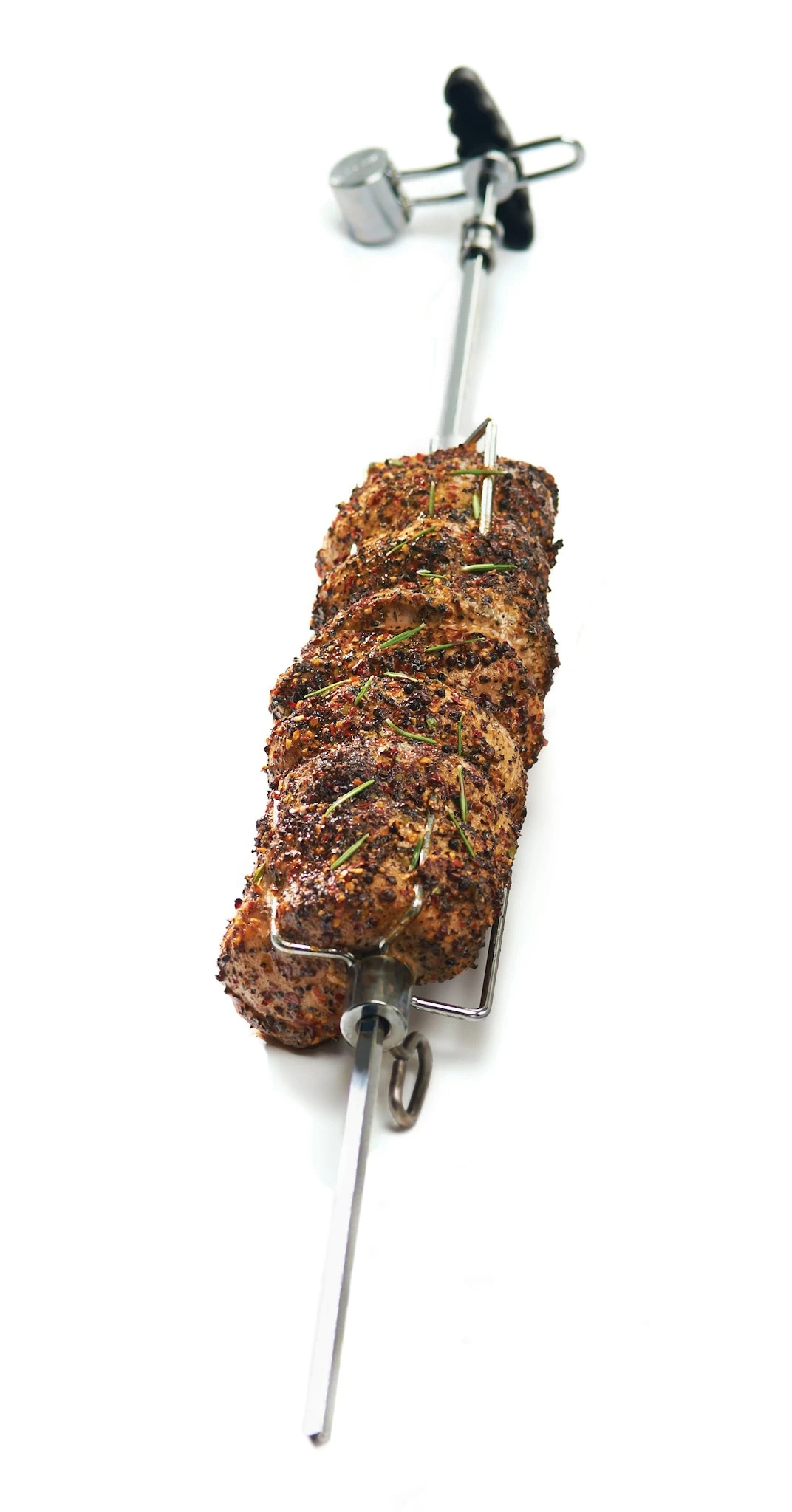 Drehspieß-Set für OMC Geräte inklusive Elektromotor, Stange, Kontergewicht, Forken, Halterung, Schrauben und Muttern.