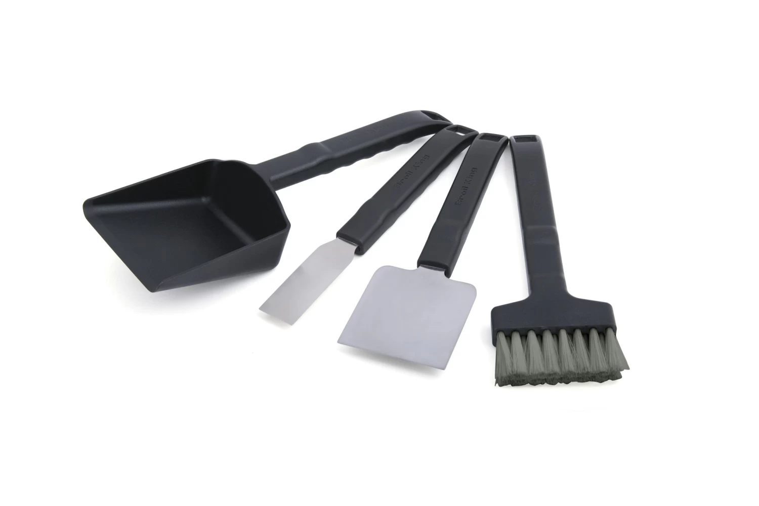 Alles was Sie benötigen um Ihren Pelletsmoker sauber zu halten. Dieses Reinigungskit beinhaltet eine Kehrschaufel, eine Bürste und zwei massive Edelstahlschaber (schmal und breit). Verwenden Sie die Bürste und die Kehrschaufel für eine bequeme Reinigung. Die beiden Spachtel ermöglichen Ihnen das leichte entfernen von eingebrannten Rückständen in Ihrem Grillgehäuse. Alle vier Werkzeuge haben geprägte Kunststoffgriffe mit Broil King® Logo.