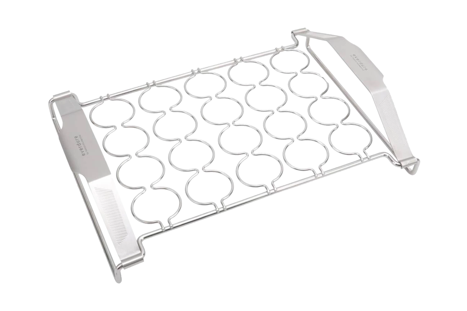 Mit dieser Gourmet Universal Halterung von Everdure aus Edelstahl können Sie optimal Gemüse, Muffins, Muscheln und vieles mehr zubereiten. Die Halterung können Sie ganz einfach auf Ihren Grillrost legen und das gewünschte Gericht zubereiten. Die Zwischendrähte sind 3 mm stark und die Außendrähte sind 6 mm stark. Maße: 37,7 x 26,1 x 7,7 cm