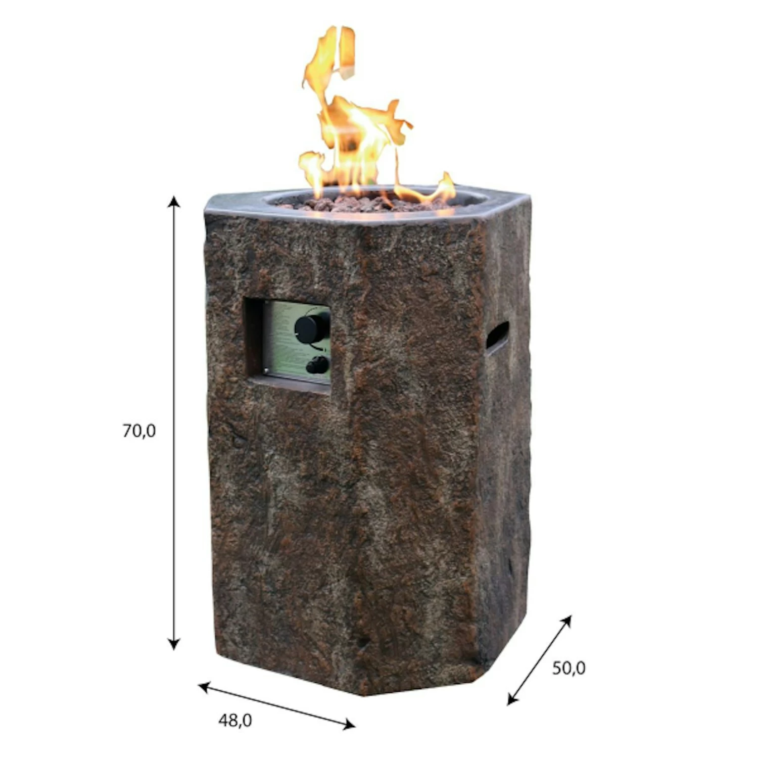 Gardenforma Gas Feuerstelle Tambora. Basalt-Optik, Faserbeton, inkl. Druckminderer, Anschlussleitung und Lavasteine schwarz, für innenliegenden Gasbehälter. Maße: L 48 x B 50 x H 70 cm