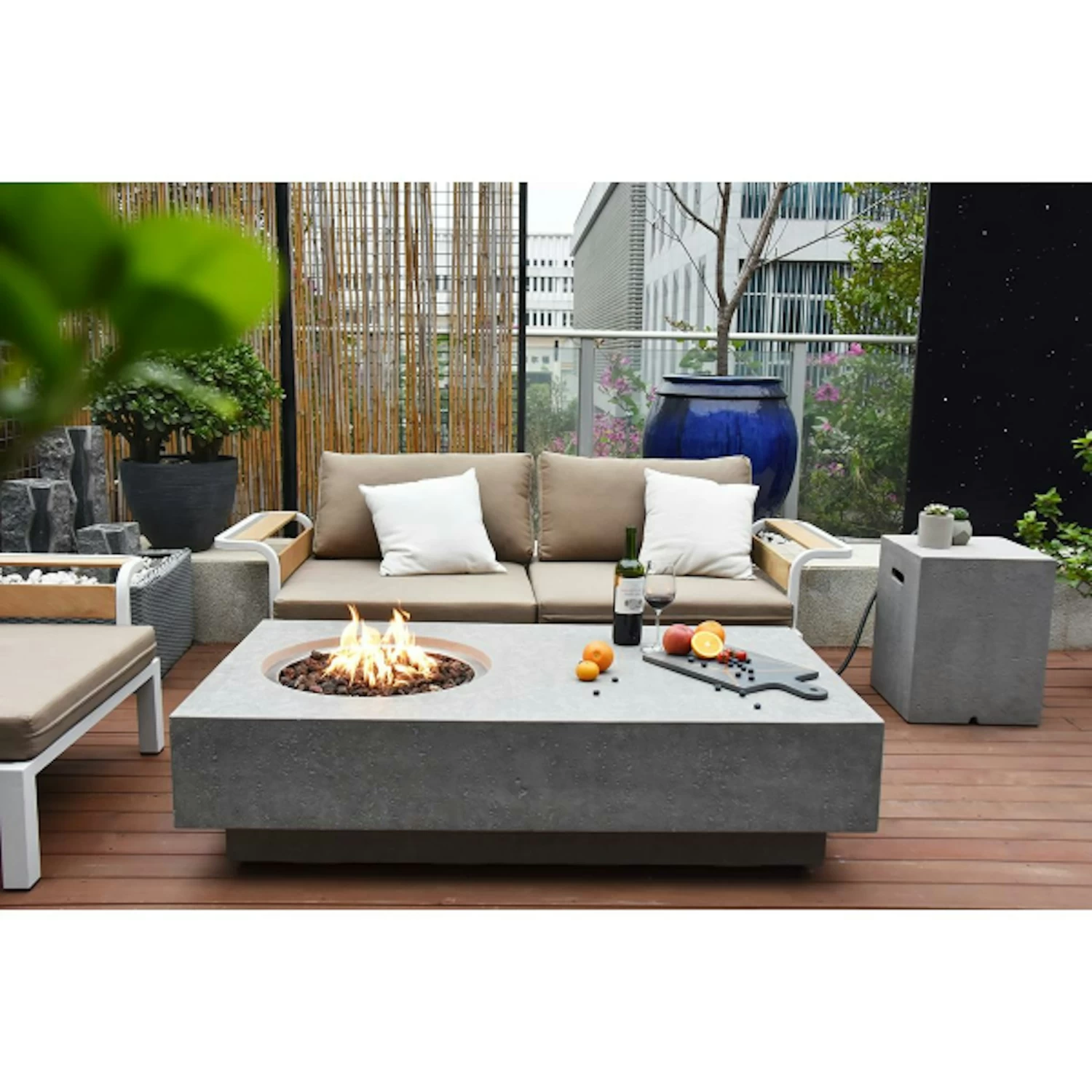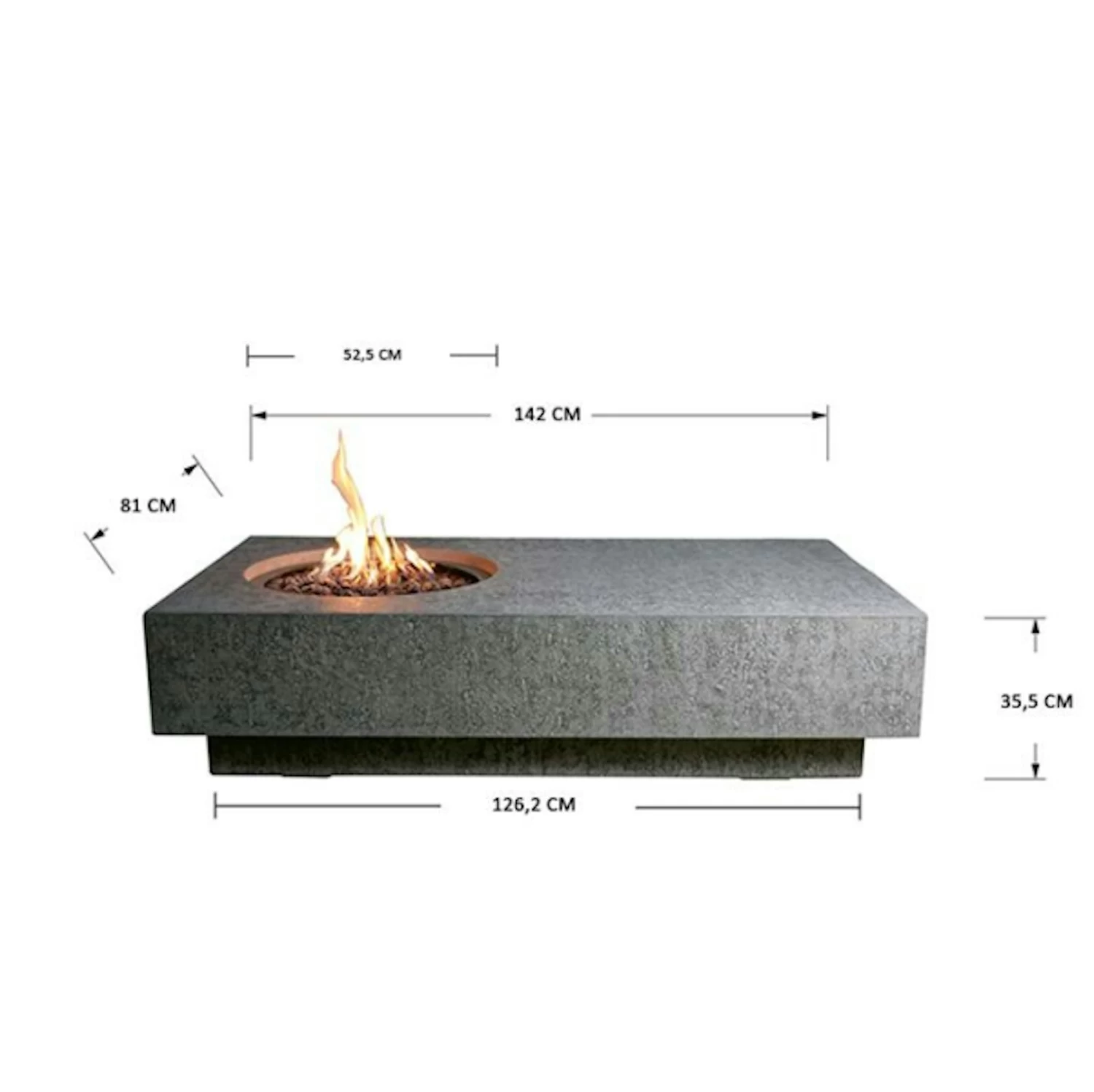 Gardenforma Gasfeuerstelle Ubinas, Beton-Optik grau Faserbeton – inkl. Druckminderer, Anschlussleitung und Lavasteine schwarz, Anschluss an externe Gasquelle. Maße: L 142 x B 81 x H 35,5 cm