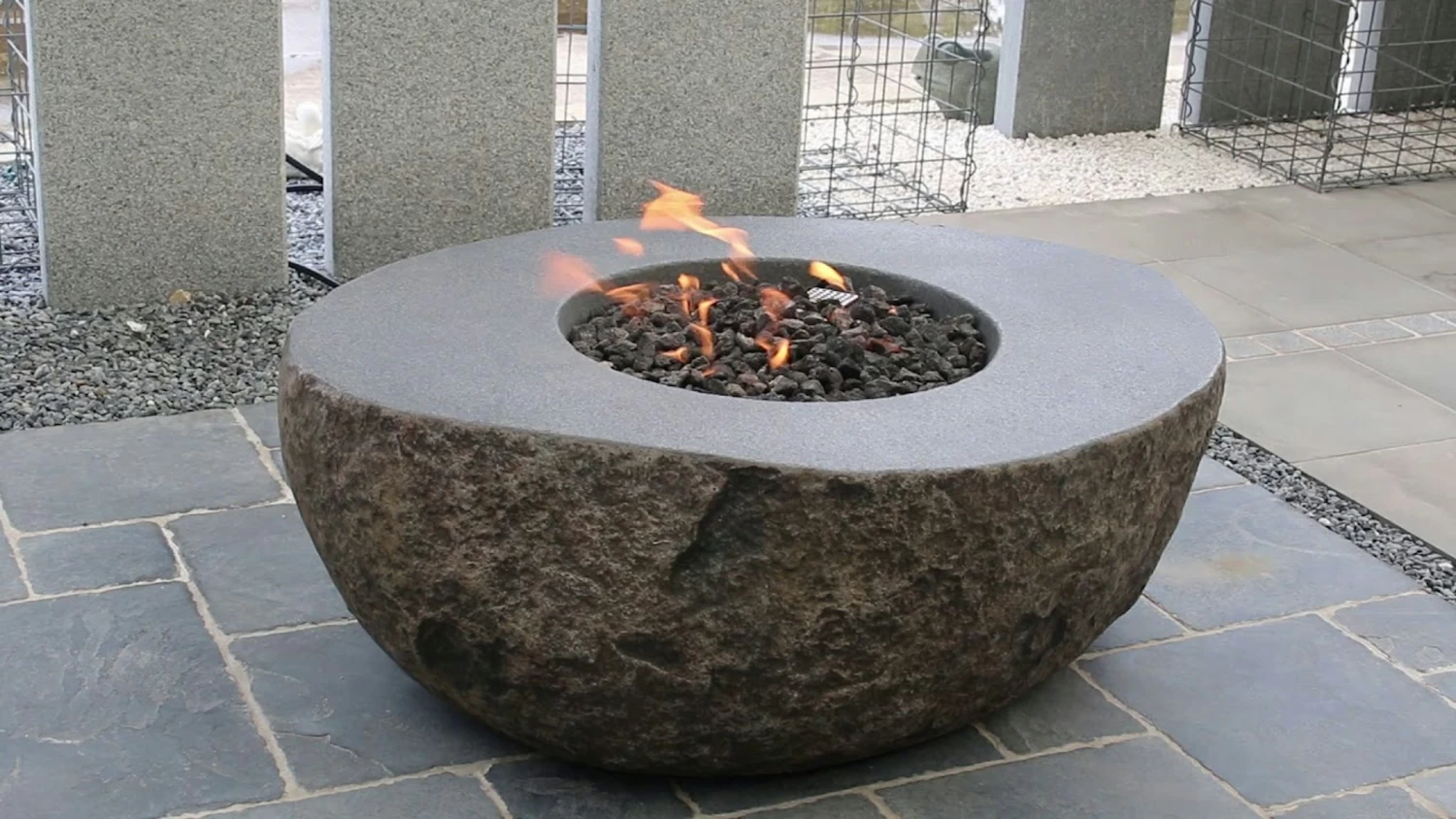 Gardenforma Sitzgruppen-Set: Gas Feuerstelle Vesuv In Basaltoptik Aus Faserbeton & 4x Hocker