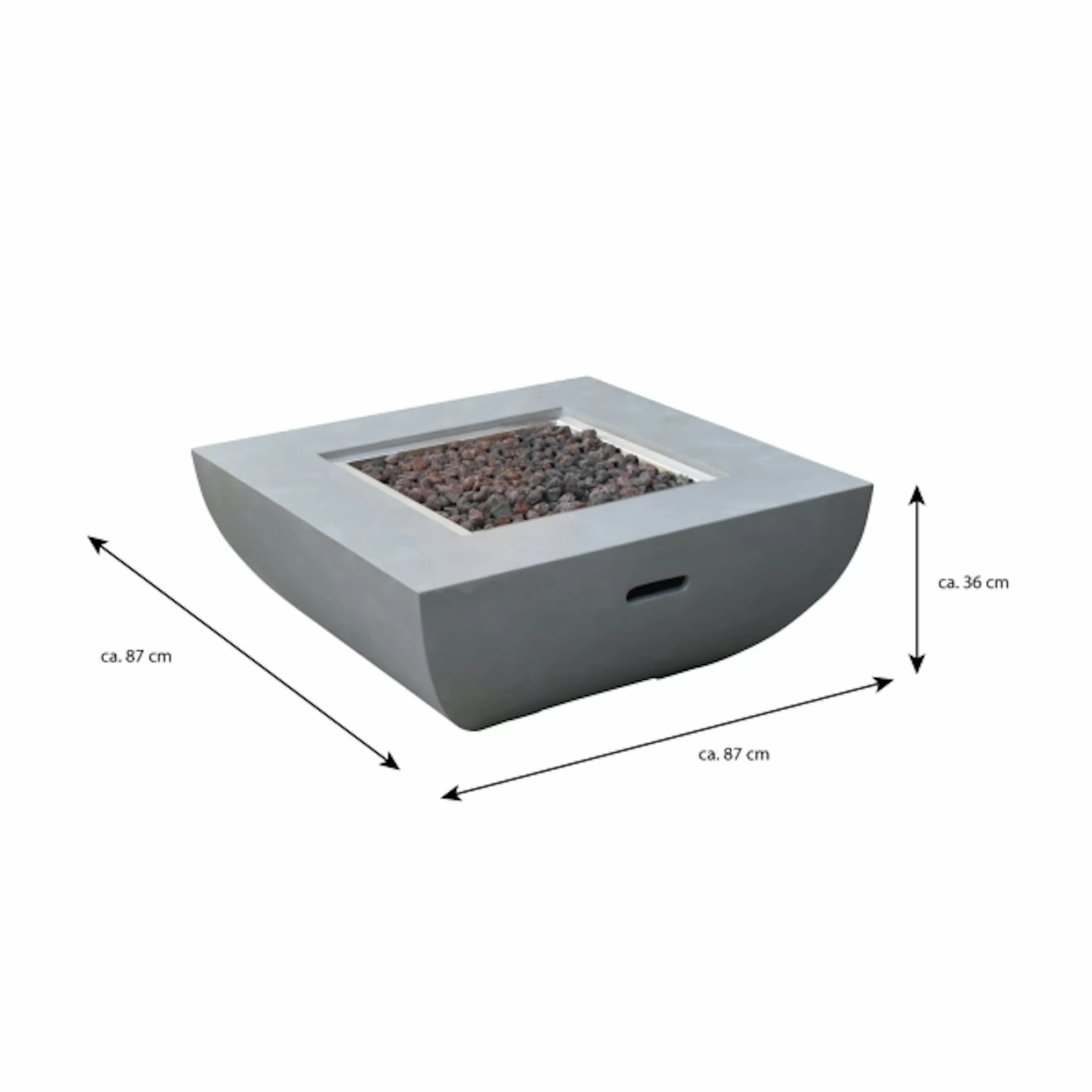 Die Gas Feuerstelle Westport aus Faserbeton in Betonoptik grau ist eine dekorative Gas-Feuerstelle aus hochwertigem Faserbeton Werkstoff in einer Premium-Betonoptik. Mit dieser Feuerstelle setzen Sie ein Highlight in jedem Garten und auf jeder Terrasse. Zum Zubehör gehören unter anderem rötliche Lavasteine, eine Edelstahl-Brennerschale sowie ein Schutz der Zündvorrichtung. Maße: L 870mm x B 870mm x H 360mm Eine hochwertige Abdeckhaube zum Schutz vor Witterungseinflüssen gehört zum Lieferumfang. Zur Inbetriebnahme wird lediglich noch eine externe Gasquelle benötigt.