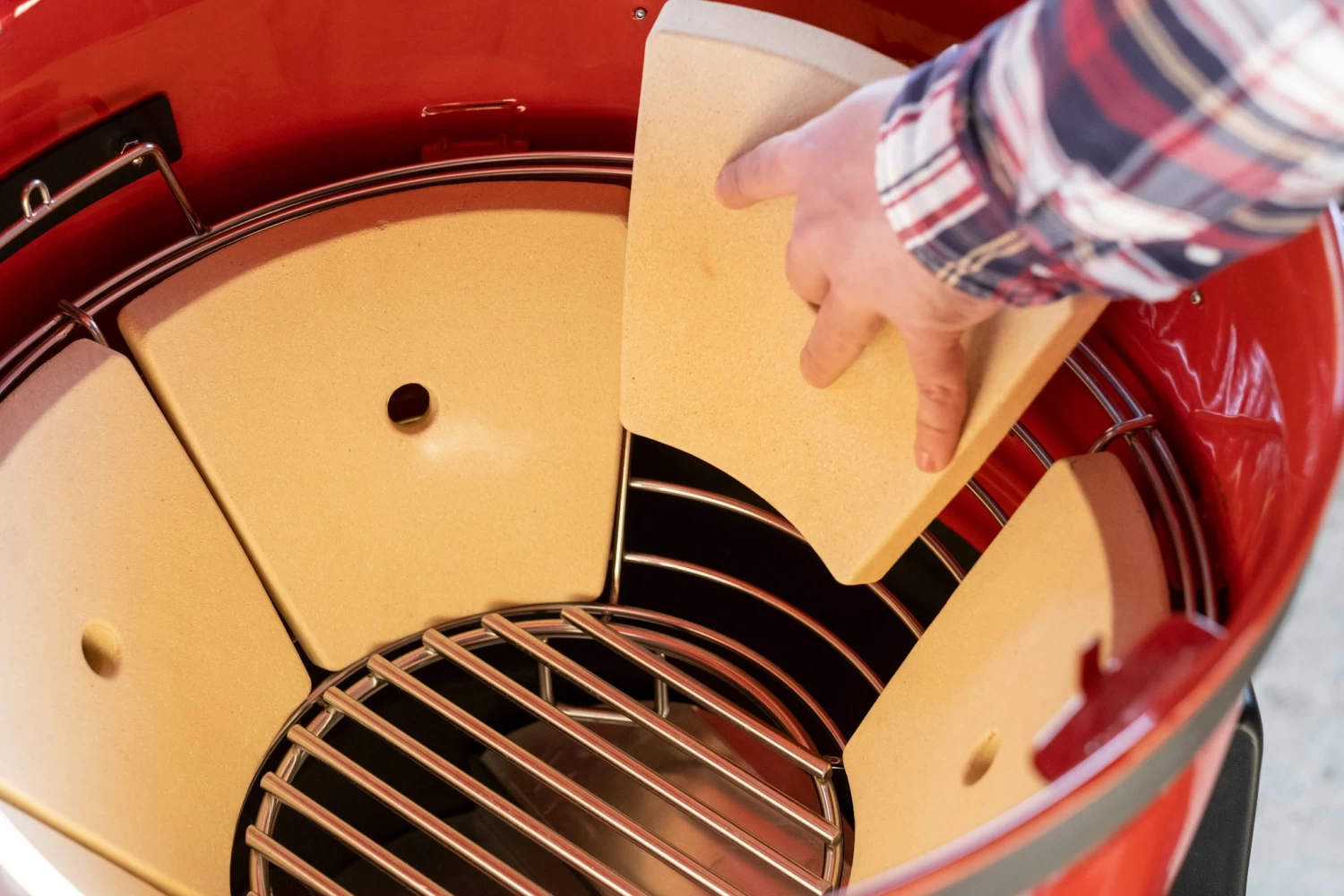Ein herkömmlicher Kugelgrill komplett neu erfunden. Kamado Joe setzt seine Innovation mit dem Kettle Joe fort – der 57cm große Kugelgrill kombiniert die Vorteile eines Kugelgrills mit denen eines Keramikgrills. Die keramische Feuerbox zum Beispiel speichert die gesamte Hitze und gibt diese sehr gleichmäßig wieder ab. Dadurch lässt sich die Verteilung von Hitze und Rauch optimieren.