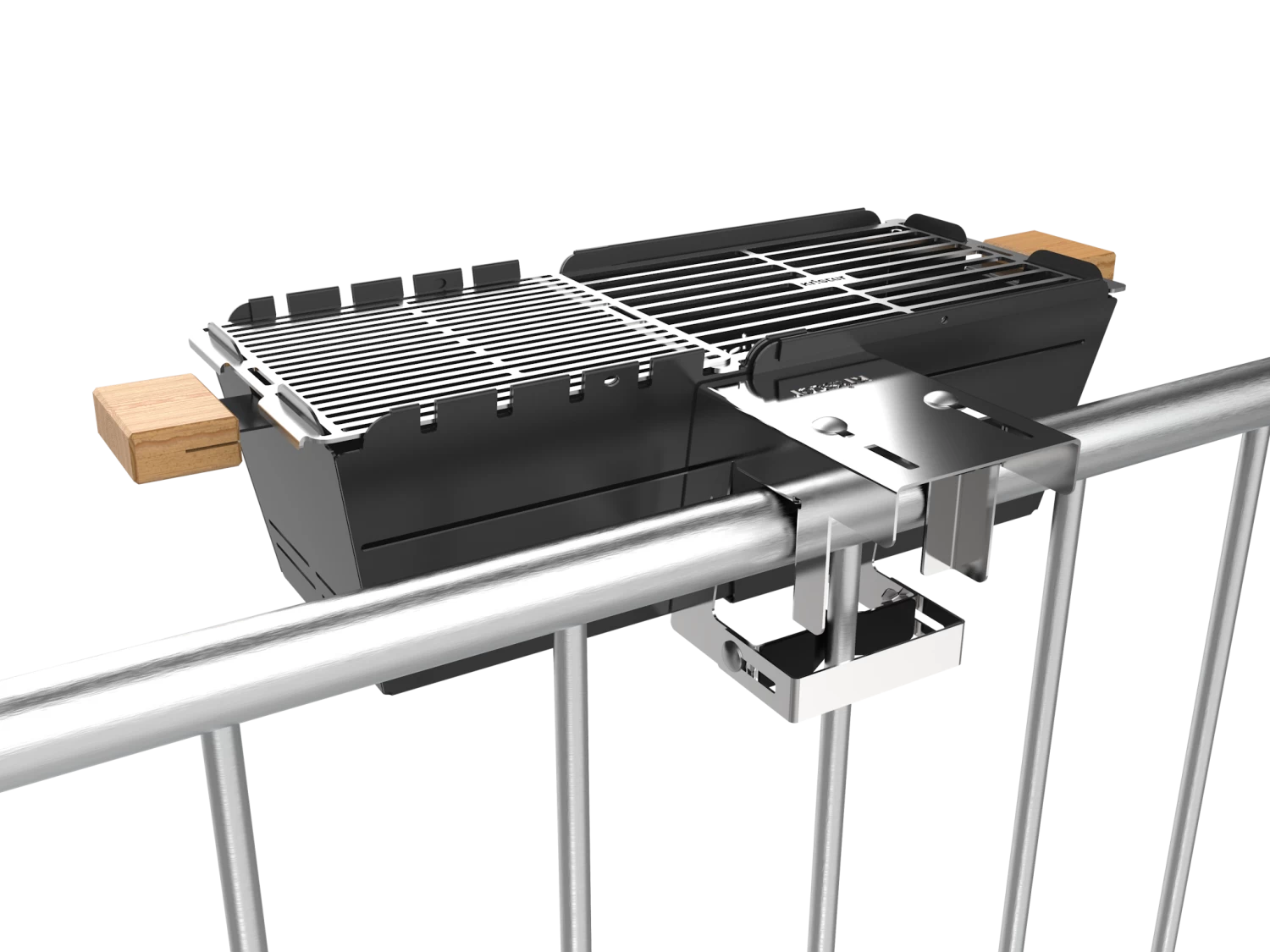 Knister Balkon- Relinghalterung, passend für alle runden, eckigen, gläserne, gemauerten Geländer. 100% Edelstahl. Maße: 10x8x10 cm