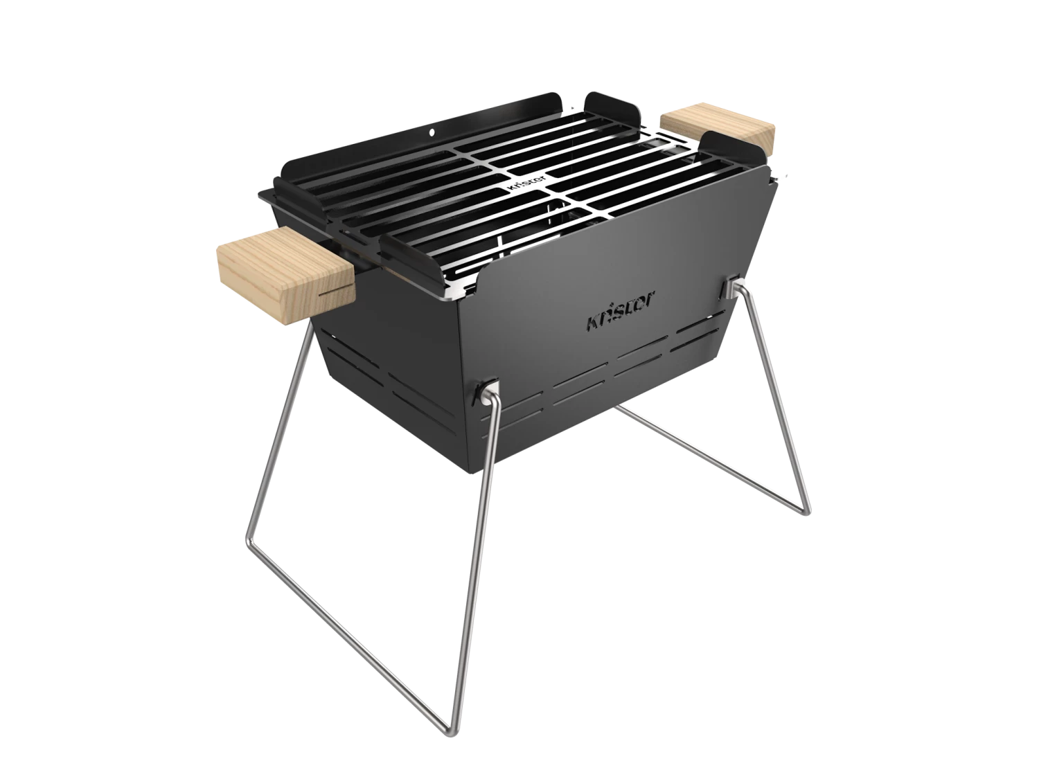 Knister Grill Small lässt sich prima verstauen und ist immer sofort einsatzbereit! Kein nerviges Aufbauen nötig . Einfach auf den Boden stellen, Beine umklappen und anzünden. Nicht auseinanderziehbar. Ideal für kleine Gruppen oder Paare. Grillfläche: 28 x 20 cm