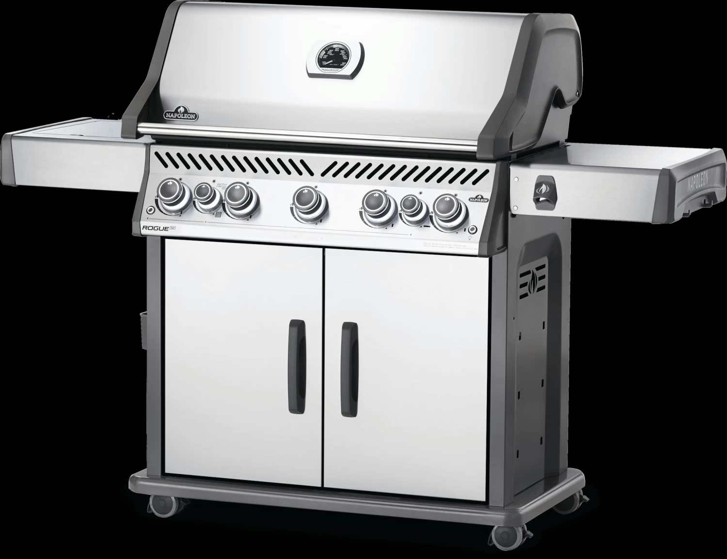 Der Propangasgrill Rogue® SE 625 aus Edelstahl mit Infrarot-Seitenbrenner und -Heckbrenner ist ein robuster Edelstahlgrill. Ausgestattet mit fünf Hauptbrennern, einem Drehspieß-Heckbrenner und einem hohen Deckel, verfügt der Grill über alles, was Sie für die Zubereitung von Feinschmeckermenüs benötigen. Braten Sie wie ein Profikoch Steaks auf der integrierten Anbratstation an und nutzen Sie die zusätzliche Vorbereitungsfläche auf den Seitenablagen. Grillfläche: 90 x 45 cm Seitenbrenner: 24 x 37 cm