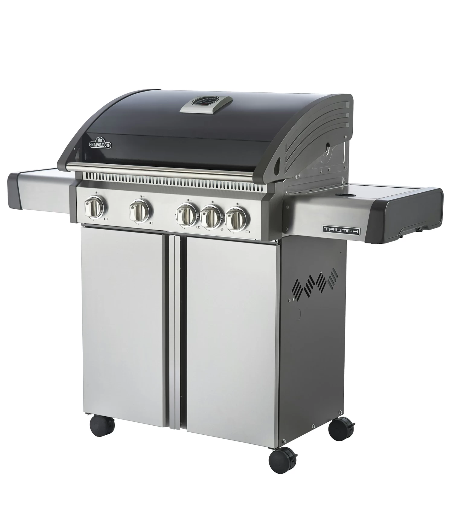 Der NAPOLEON Triumph 495 Gasgrill Edelstahl steht für hochwertige Qualität und viele Extras wie zum Beispiel einem Seitenbrenner mit Kochfeld, einem „WAVE“ Stabgrillrost aus porzellanbeschichtetem Gusseisen, einem integrierten Flaschenöffner und klapparen Seitenablagen. Grillfläche: 72 x 43 cm