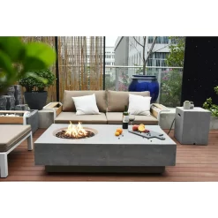 Gardenforma Sitzgruppen-Set: Gas Feuerstelle Vesuv In Basaltoptik Aus Faserbeton & 4x Hocker