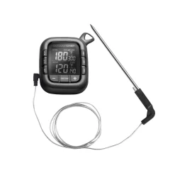 Der GOURMET CHECK besticht durch sein Design und die übersichtliche, nutzerfreundliche Bedienoberfläche. Der spülmaschinenfeste Dual-Messfühler misst gleichzeitig die Umluft- und Kerntemperatur und garantiert zusammen mit der integrierten Timer- und Alarmfunktion, dass Steaks saftig bleiben und Braten auf den Punkt gegart sind. Der Gourmet Check ist ein Allrounder und eignet sich auch für Backofengerichte. Jetzt in puristischem Grau.