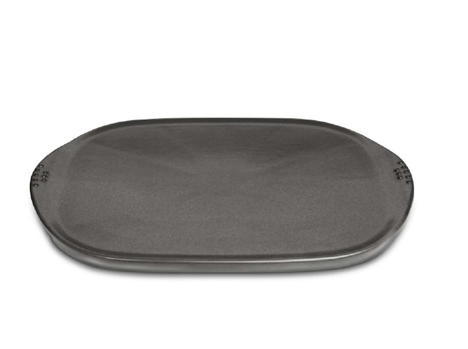 Extra flache Weber Keramische Grillplatte mit abgerundeten Ecken für die bequeme Zubereitung von Gemüse, Früchten, Fischspeisen sowie zum Warmhalten. Die Keramische Grillplatte ist für alle Holzkohlegrills ab 57 cm Durchmesser und alle Gasgrills ab Weber Q 200 geeignet.