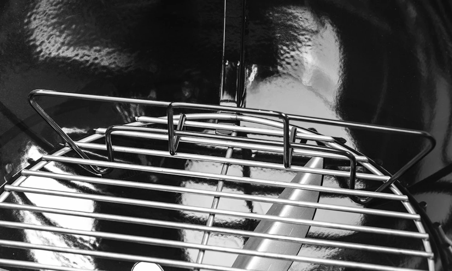 Der Weber Original Kettle E-5710 ist ein Klassiker unter den Holzkohlegrills. Das Multitalent mit Kult-Status verfügt über viele Extras wie zum Beispiel einem stabilen Duroplastgriff mit Hitzeschutz am Deckel und Kessel, einem hochwertigen verchromten Grillrost und einer herausnehmbaren, noch tieferen Ascheauffangschale. Für mehr Komfort wurde der Original Kettle mit dem One-Touch System ausgestattet, außerdem wurden die Beine verlängert, wodurch eine bequeme Arbeitshöhe geschaffen wird. Grillfläche: Ø 57cm