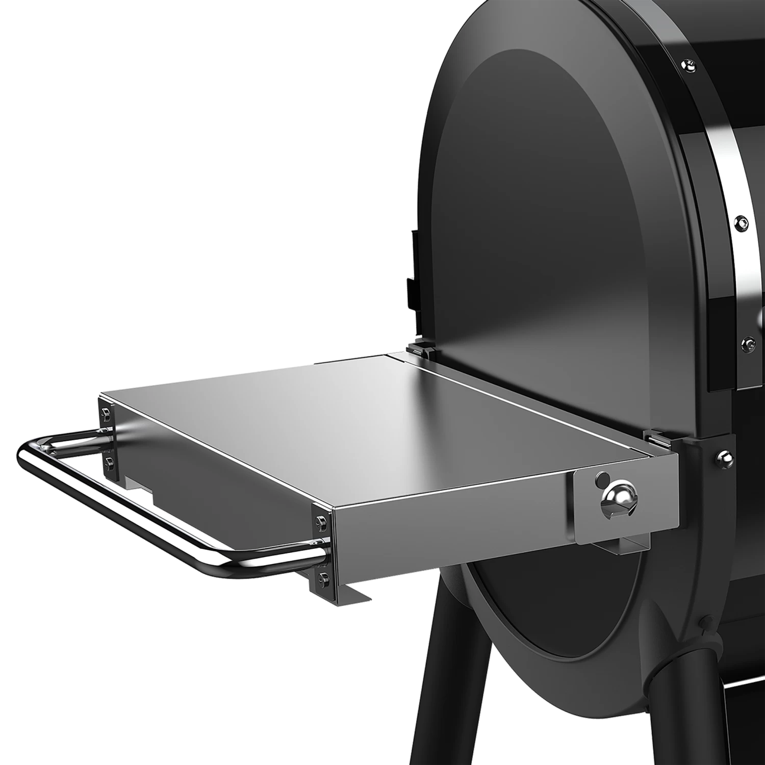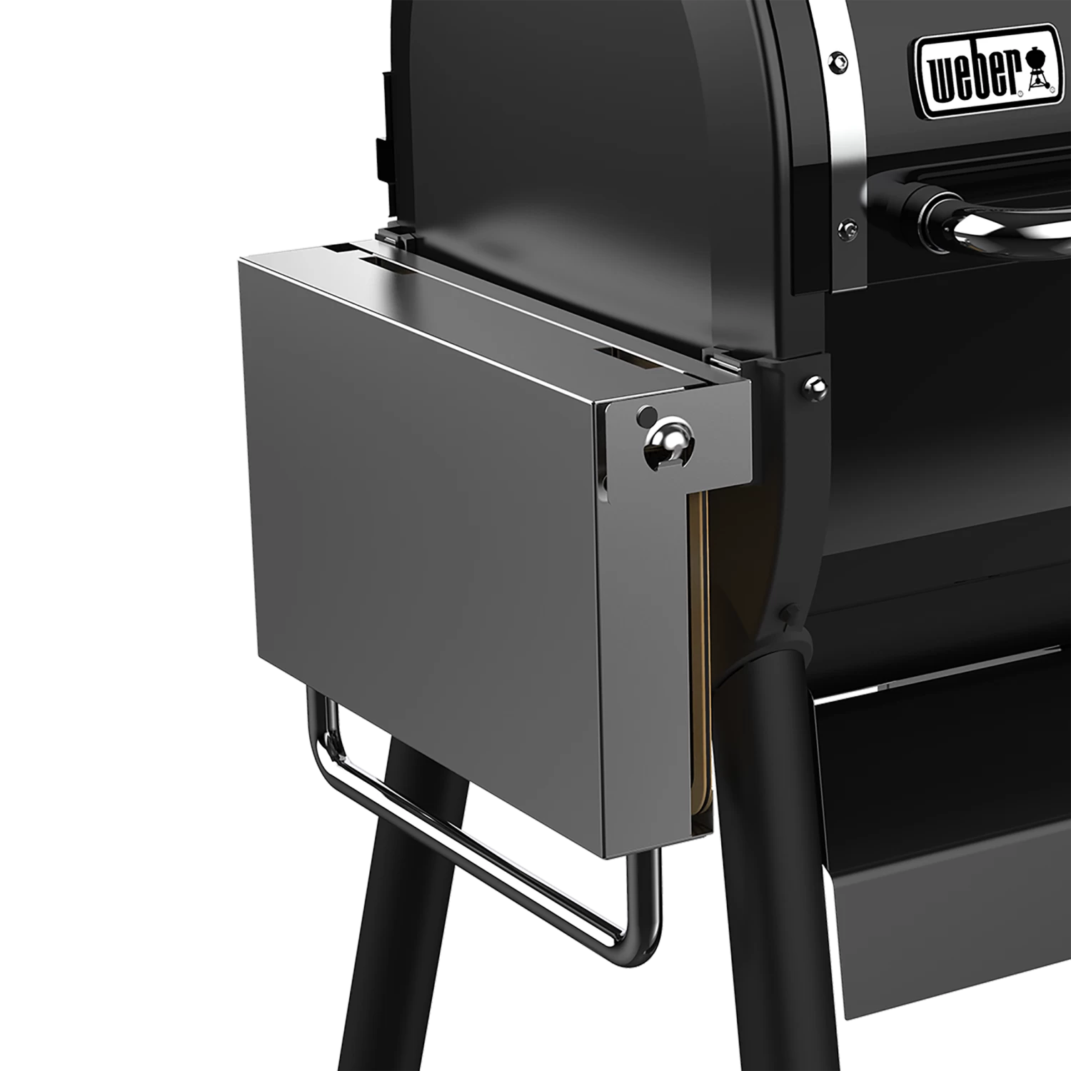 Noch mehr Platz zum Vorbereiten, Servieren und Ablegen der Grillutensilien mit dem SmokeFire Edelstahl-Seitentisch zum Herunterklappen.